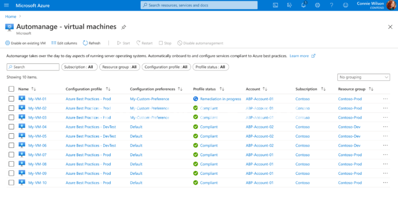 You can enable Automanage with point-and-click simplicity on selected new and existing VMs, and disable it at any time.