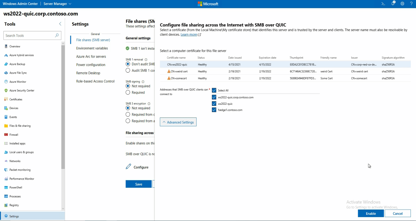 - Securely access files when working remotely without a VPN using built-in SMB over QUIC, a secure file-serving protocol.