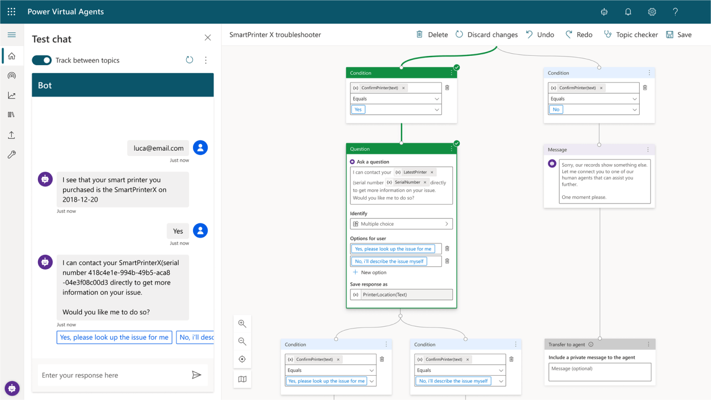 Citizen developers who prefer a no-code experience can get started with Power Virtual Agents. Developers who prefer an inline coding experience can start with Bot Framework Composer and tools.