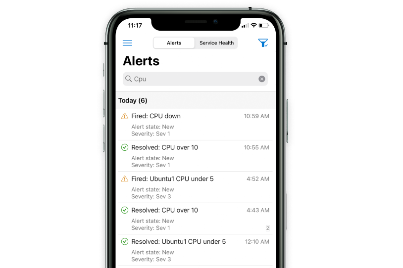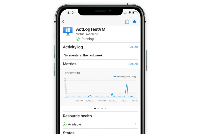 Effectuez le suivi de l’état de vos ressources Azure, telles que les machines virtuelles et les applications web, à partir de votre appareil mobile. Recevez également des alertes sur votre environnement.