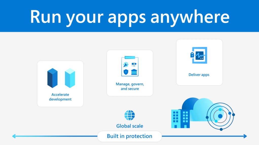 - 使用 Azure Arc 加速开发,并使用内置的统一安全工具保护数据、应用和基础结构。