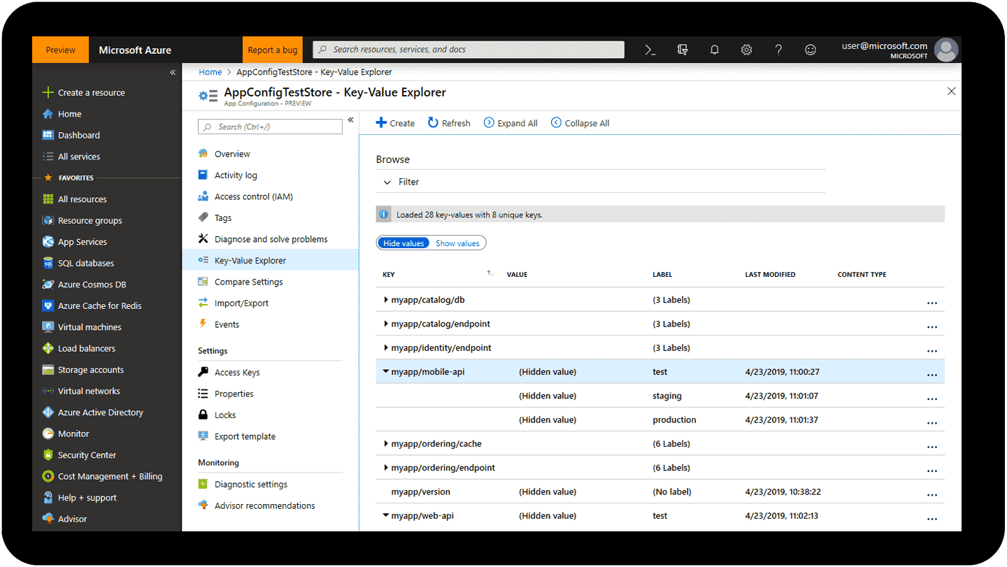 将所有 Azure 应用的配置存储在通用的托管位置。通过避免耗时的重新部署,实时有效且可靠地管理配置,而不影响客户。Azure 应用程序配置旨在提高速度、可伸缩性和安全性。