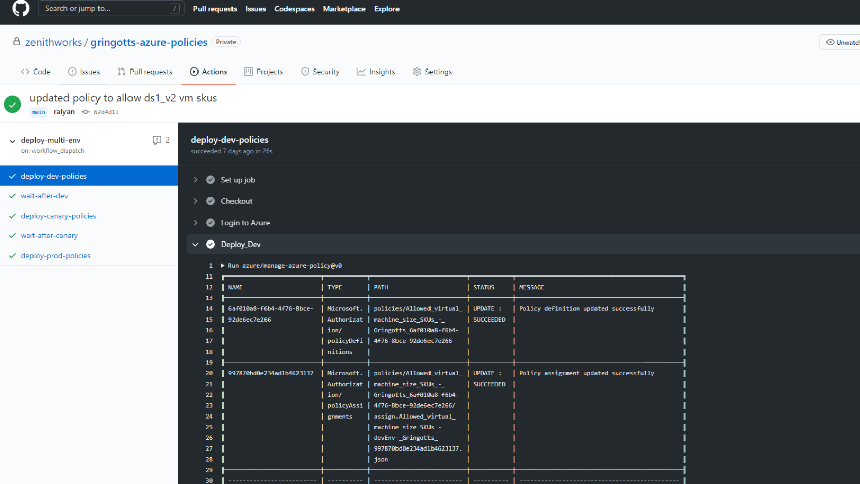 若要提升开发人员速度,请从手动管理 Azure 门户中的每个策略转变为更具可管理性、协作性和可重复性的企业级过程。只需单击几下鼠标即可将 Azure 策略导出到 GitHub 存储库,然后使用版本控制来协作和跟踪更改,并使用自定义 GitHub 工作流部署策略。