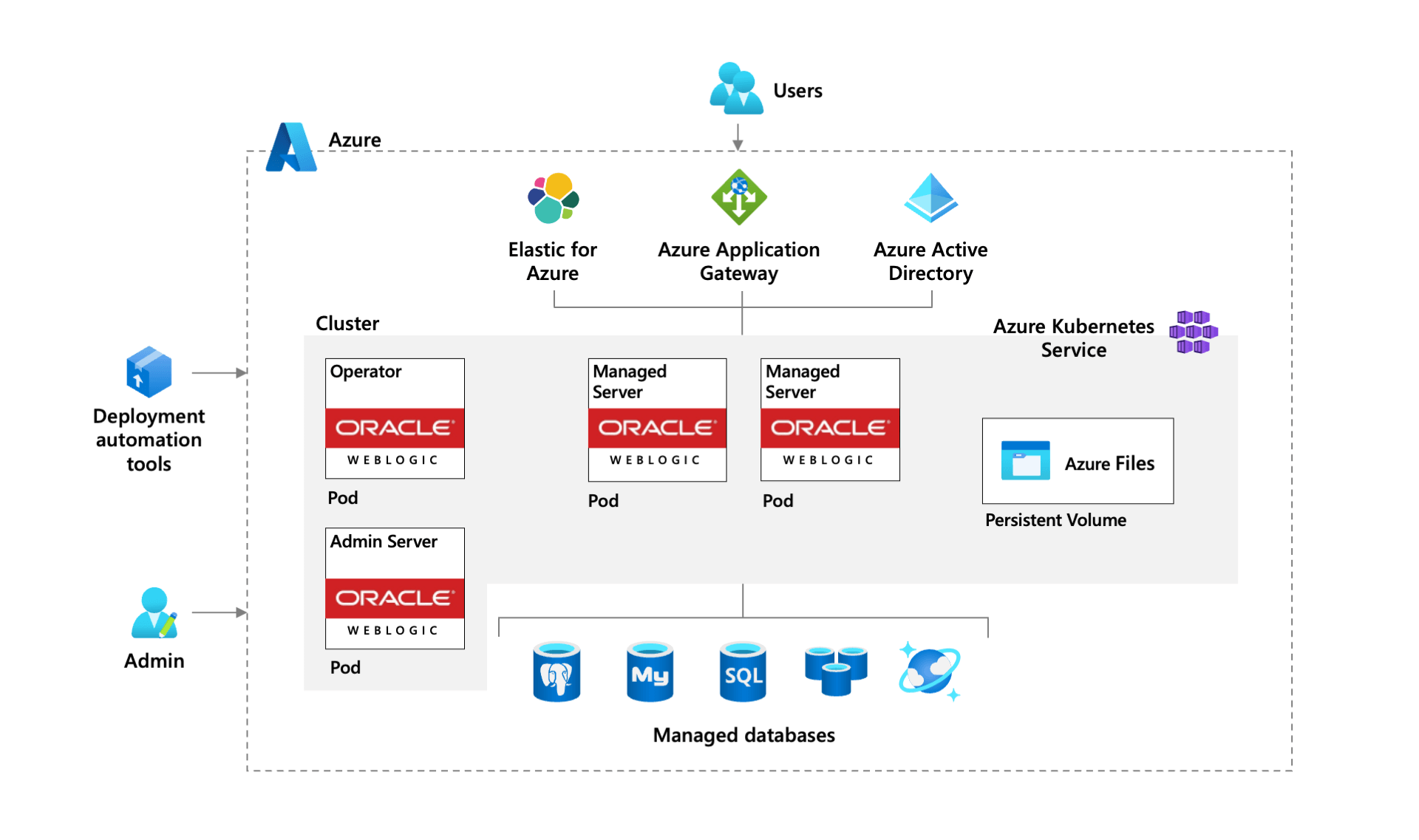 使用经过 Microsoft 和 Oracle 验证的解决方案在 AKS 上的 Oracle WebLogic Server 中运行 Java EE 应用程序。通过说明、示例和最佳做法轻松创建生产就绪的部署。