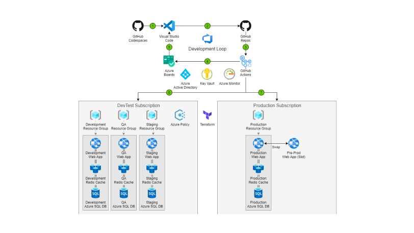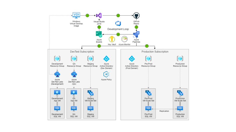 提升团队能力,使其能够快速预配开发/测试和预生产环境,从而交付高质量的产品、应用程序和服务。使用专门构建的托管开发人员服务(例如 Azure 开发测试实验室、GitHub Codespaces 和 Azure 虚拟桌面)轻松管理并优化开发/测试环境、租户和订阅,且无需牺牲治理、成本控制或安全性。