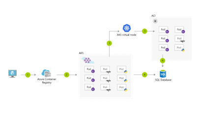 使用 AKS 虚拟节点在 ACI 内部预配在几秒内启动的 Pod。这使 AKS 能够以刚好足以满足您的平均工作负载的容量运行。当 AKS 群集中的容量用完时,可以在 ACI 中横向扩展额外的 Pod,而无需管理任何额外的服务器。